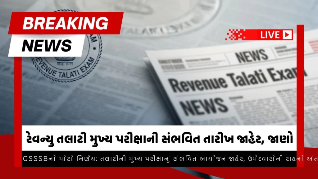 Revenue Talati Mains exam update: ગુજરાત ગૌણ સેવા પસંદગી મંડળ (GSSSB) દ્વારા મહેસૂલી તલાટીની મુખ્ય પરીક્ષાની તારીખનું સંભવિત આયોજન જાહેર